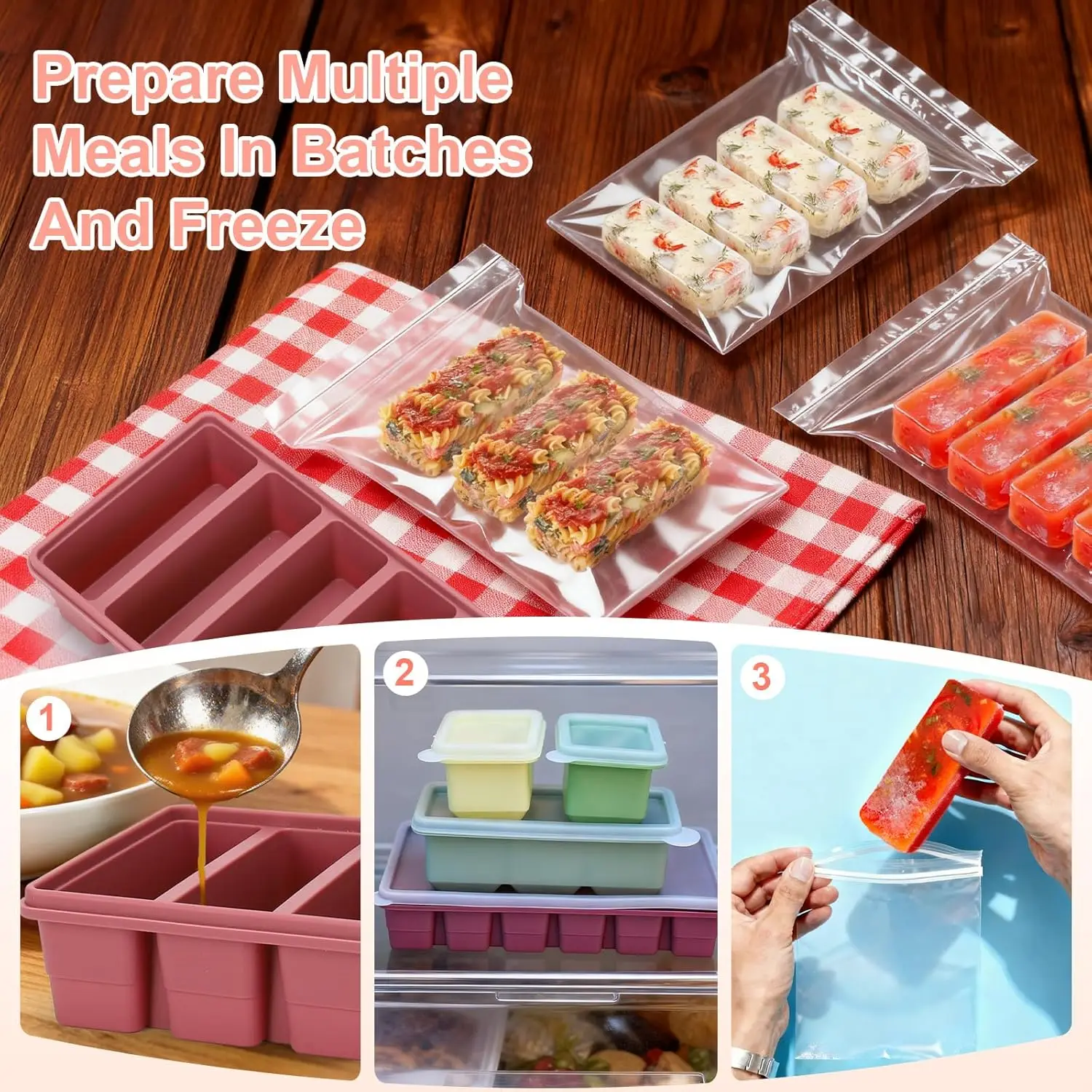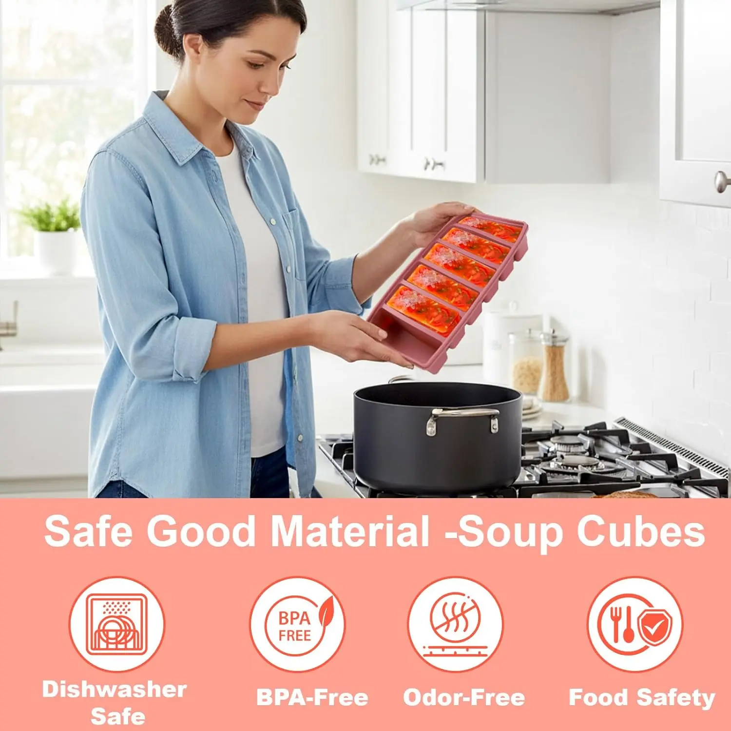These molds aren’t limited to soups. Freeze homemade sauces in 1/2-cup portions for quick weeknight dinners, portion out baby food or smoothie drops, freeze chopped herbs in handy cubes, or create large ice cubes for entertaining drinks. The different tray configurations make it easy to plan meals, control portions, and reduce food waste with precision.