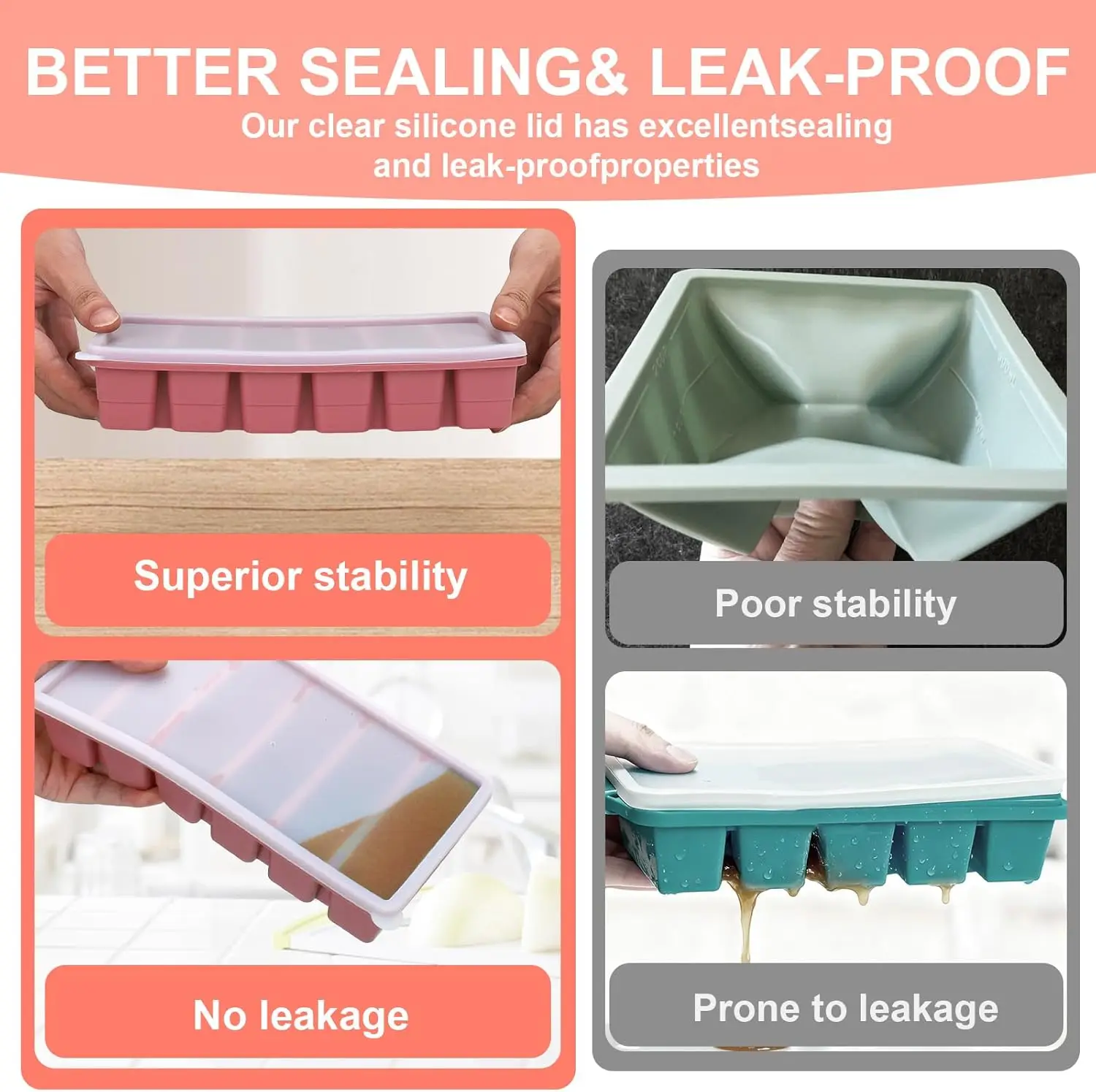 Crafted from durable BPA-free silicone with the right amount of firmness, these trays deliver truly easy removal — just push from the bottom and the frozen portions slide right out without scraping or cracking. The tight-sealing lids lock in flavor and moisture, preventing leaks during storage and transit so you can grab what you need without a mess.