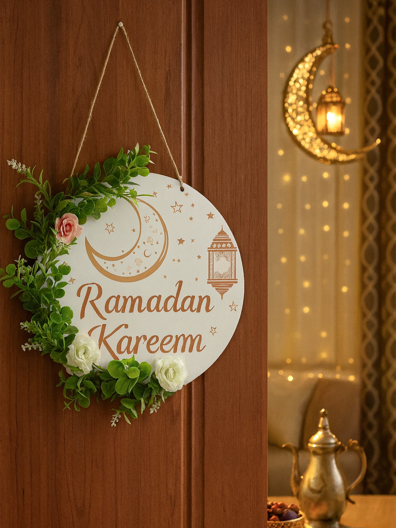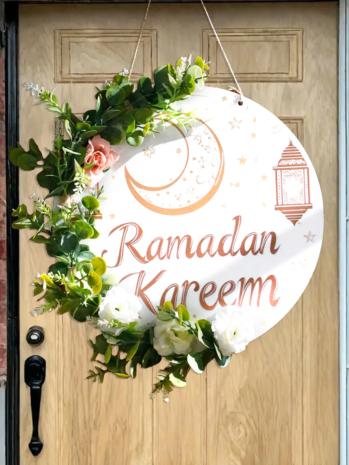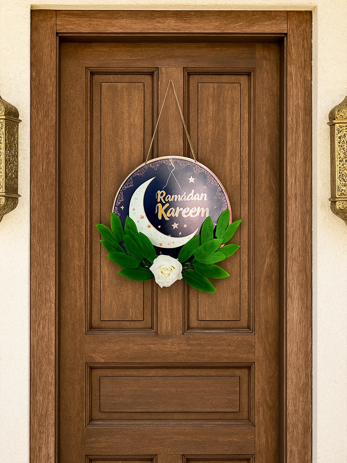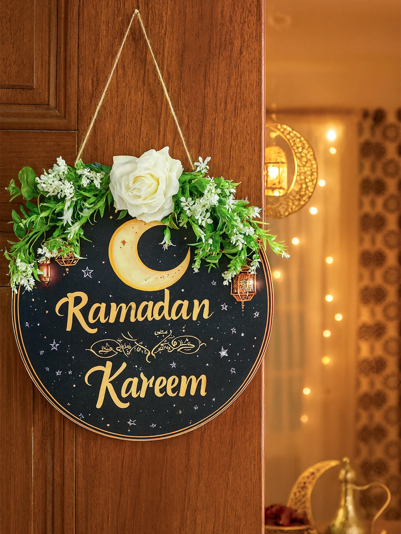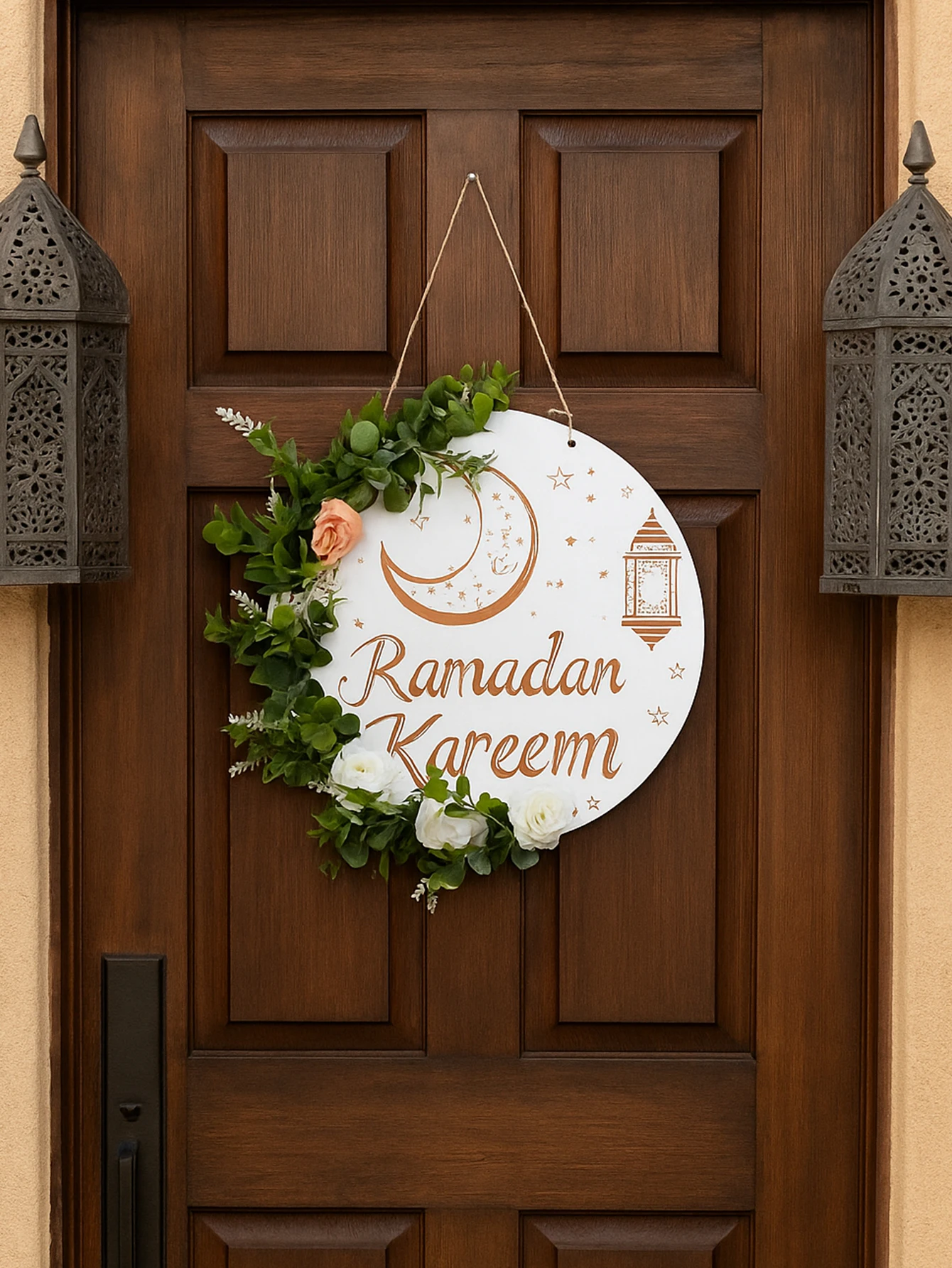 Floral Ramadan Door Sign Hanging– Moon & Star Lantern Decor for Home