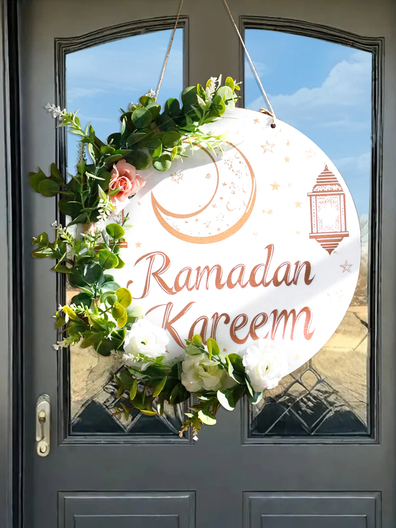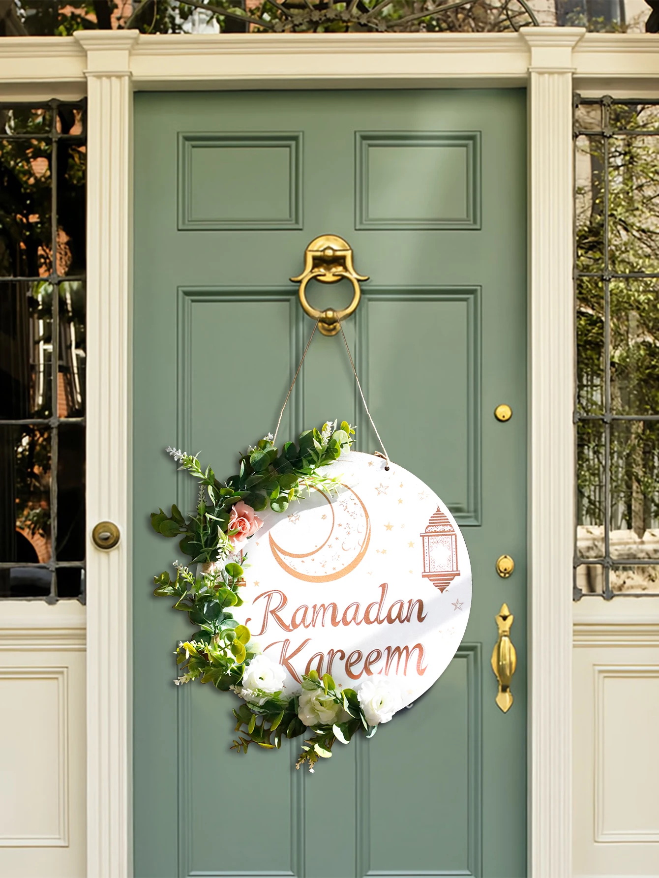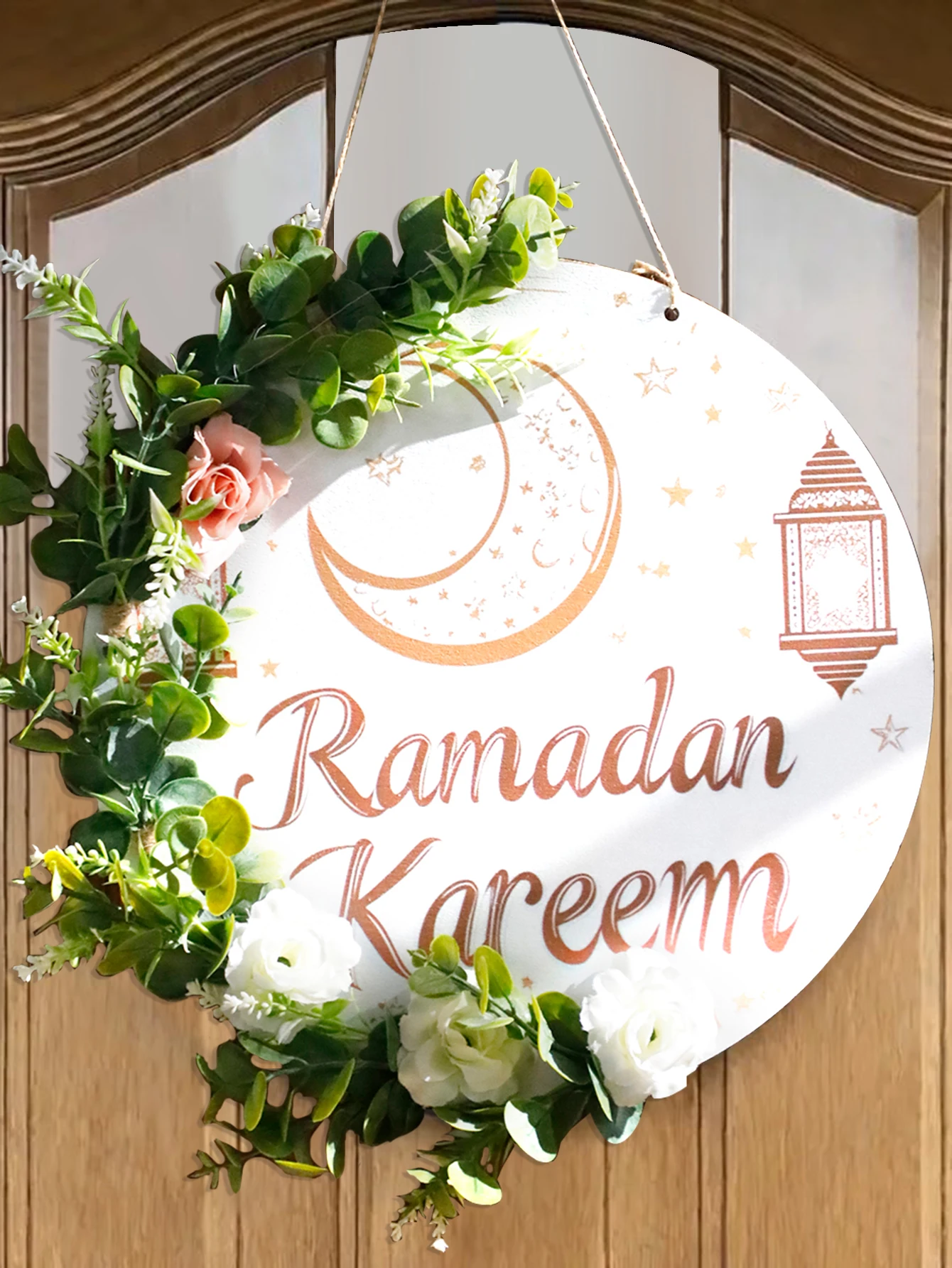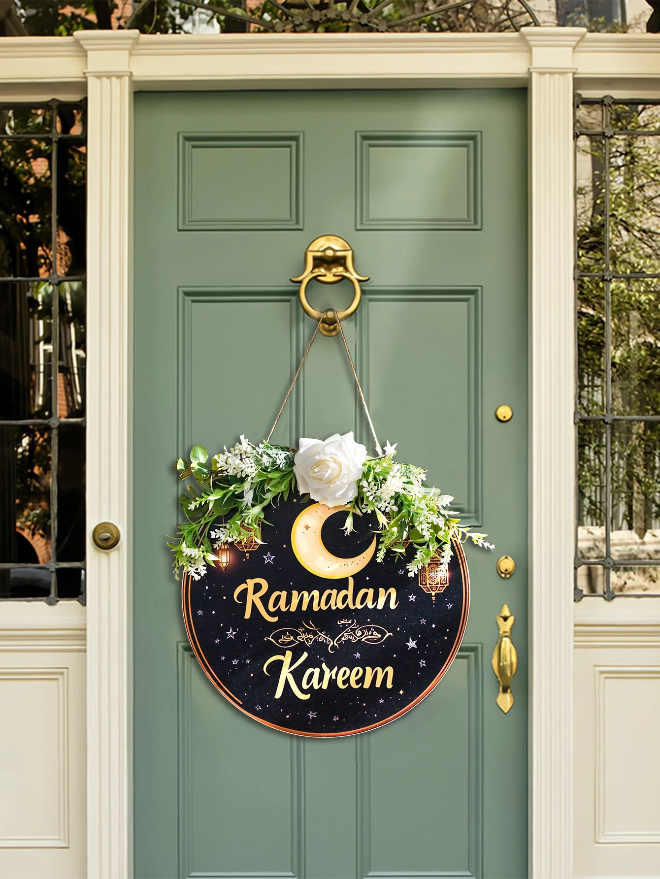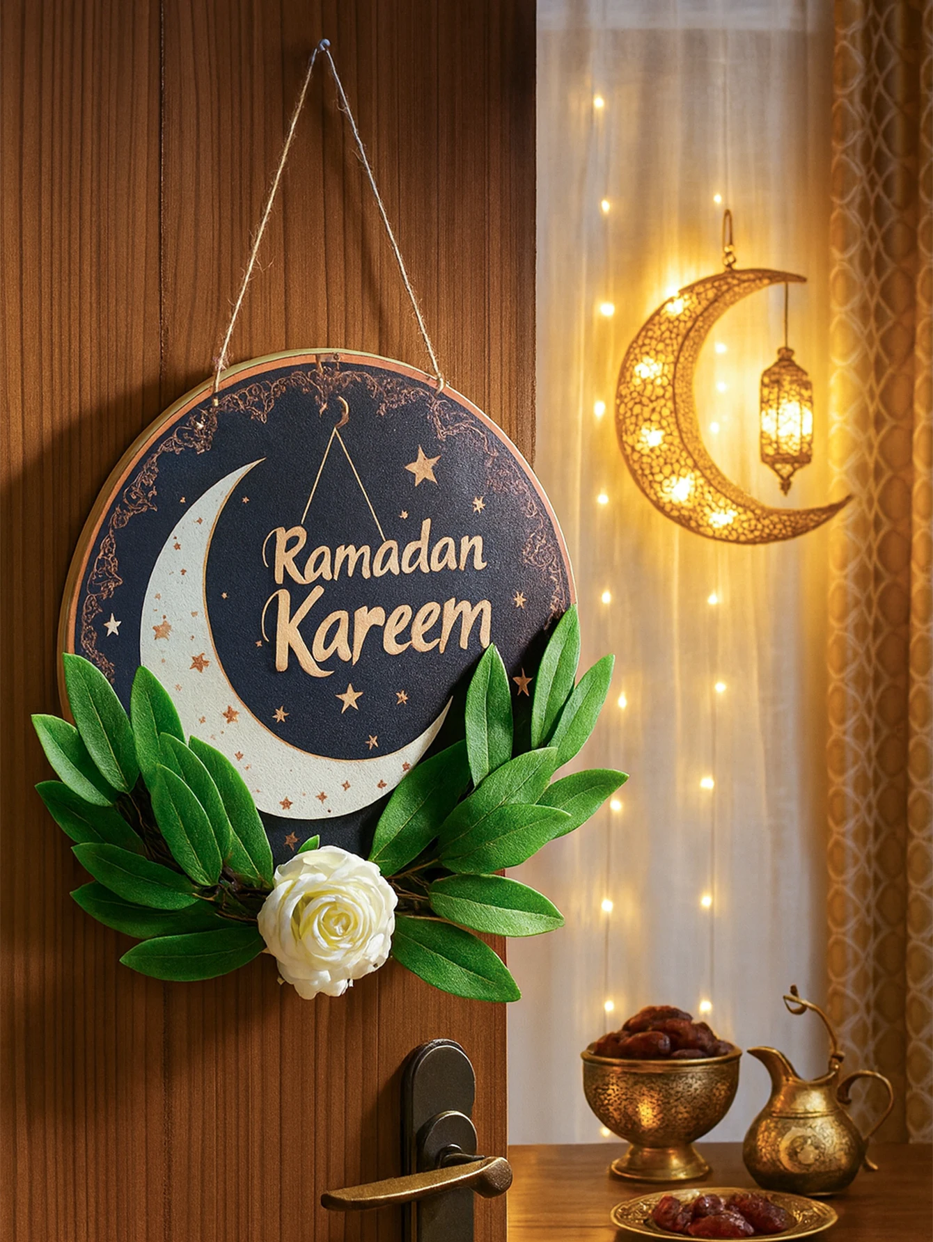 Floral Ramadan Door Sign Hanging– Moon & Star Lantern Decor for Home