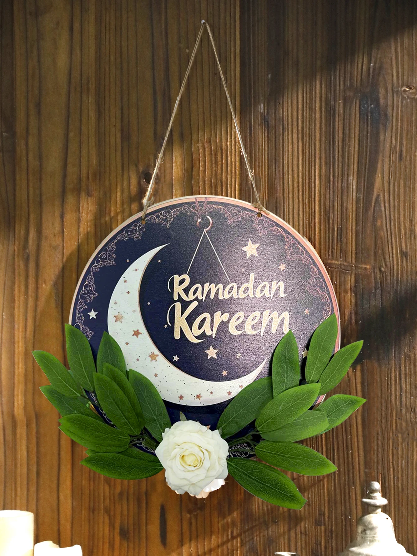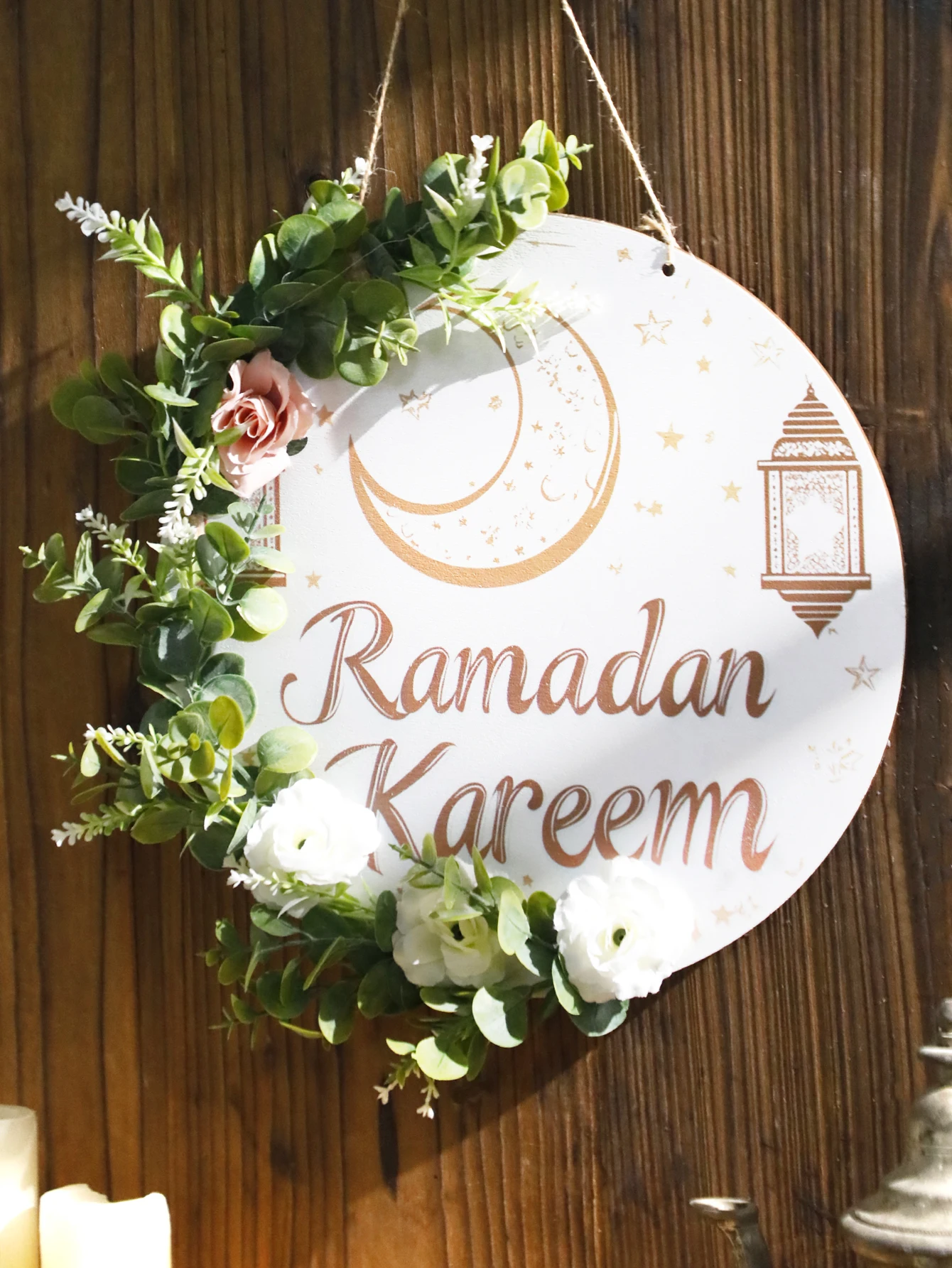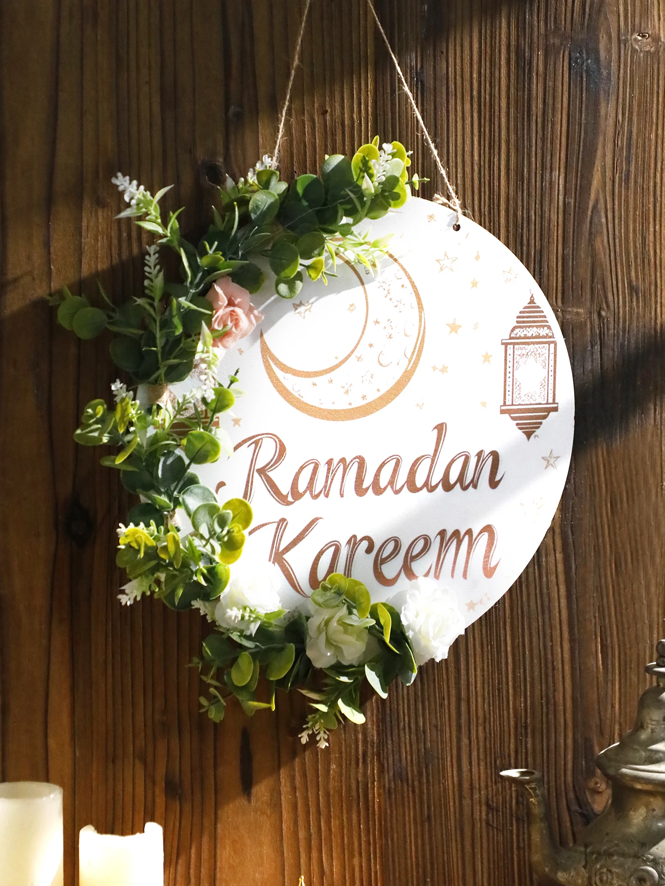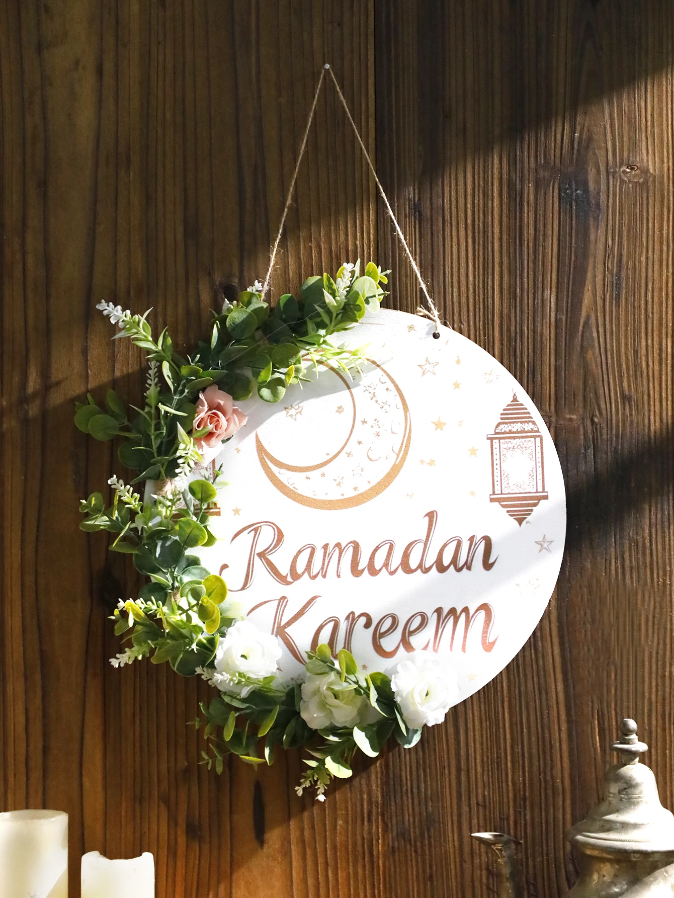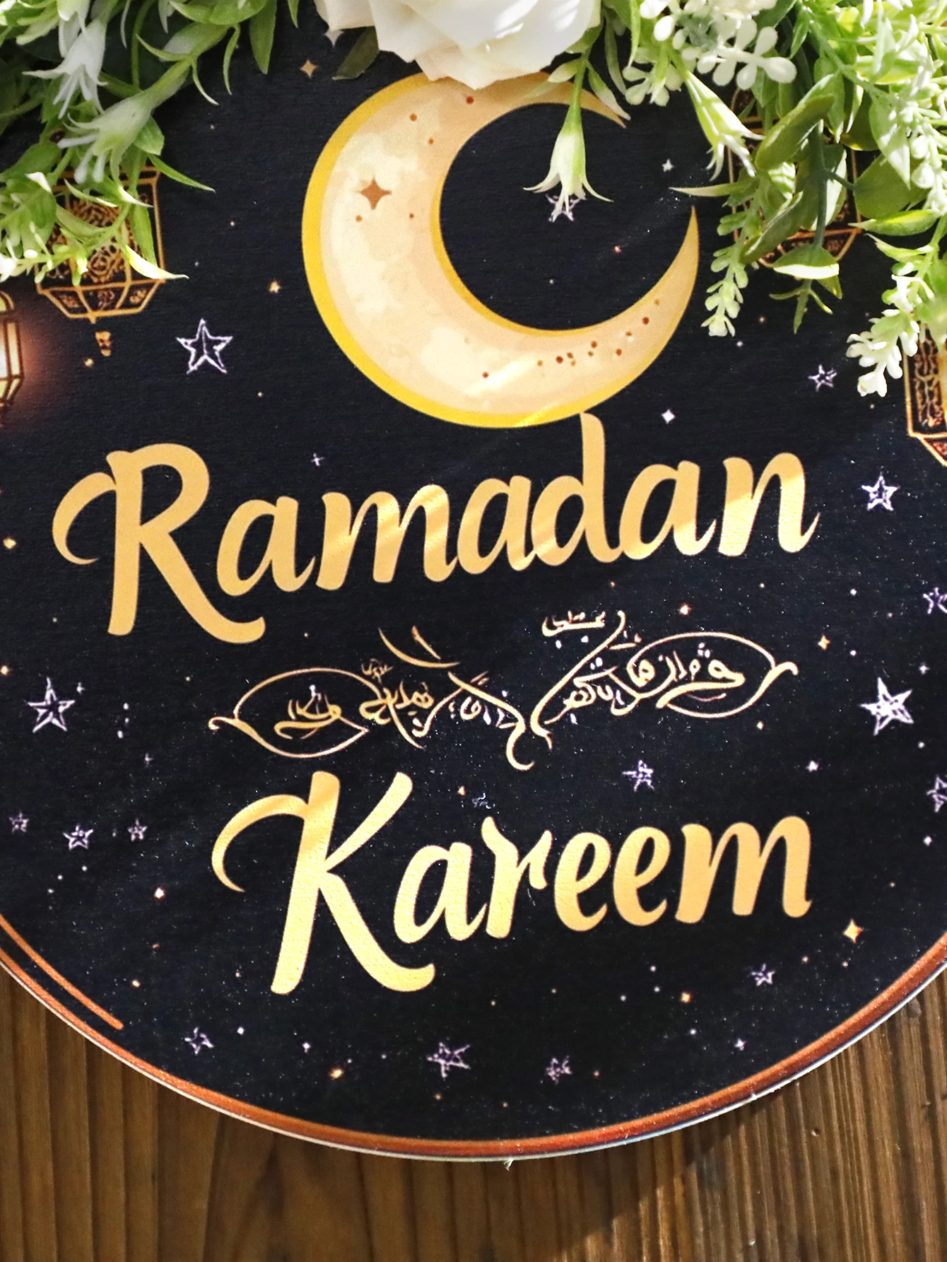 Floral Ramadan Door Sign Hanging– Moon & Star Lantern Decor for Home