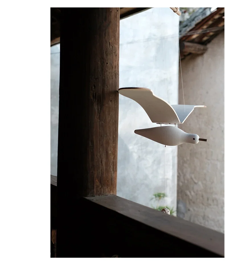 Handcrafted Natural Wood Flying Seagull - Hanging Mobile Decor for Nursery & Kids Noels Strive