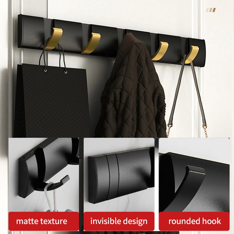 Meet the Modern Folding Door Hooks — a six-hook wall rack designed to streamline every room. Crafted from sturdy aluminum, this nail-free wall organizer adds a touch of contemporary elegance while keeping towels, coats, and kitchen gear neatly accessible. The six evenly spaced hooks provide generous hanging space without crowding, so you can grab what you need in a hurry.